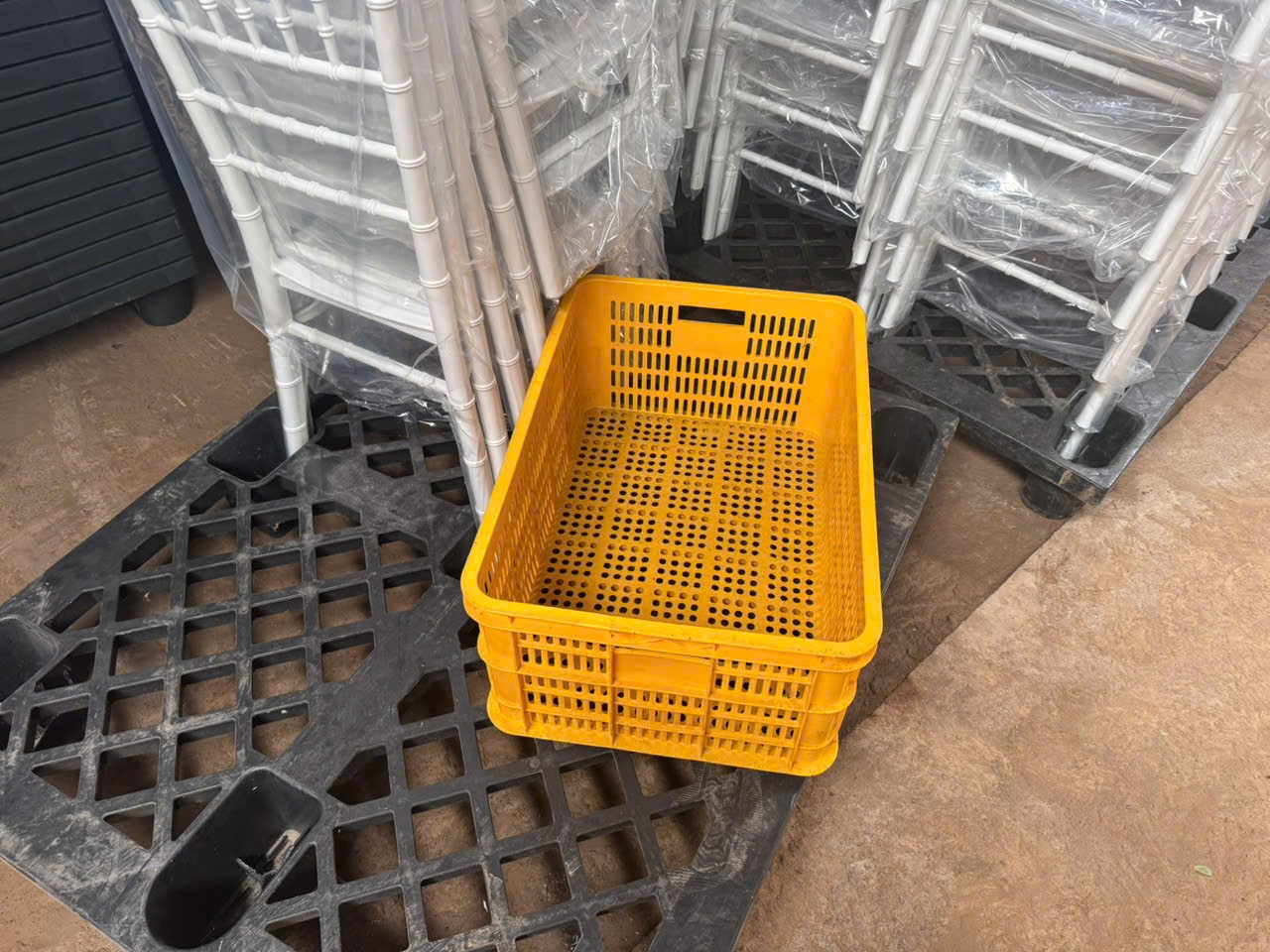 Xếp tối đa 5–7 tầng tùy loại sọt Sử dụng pallet nhựa để cố định hàng hóa