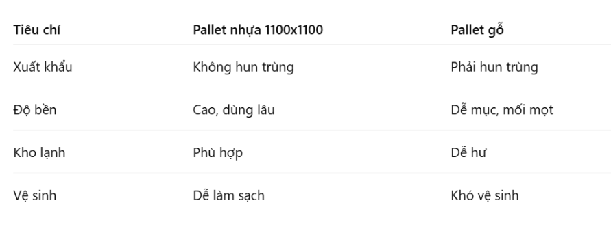 5. So sánh pallet nhựa 1100x1100 và pallet gỗ